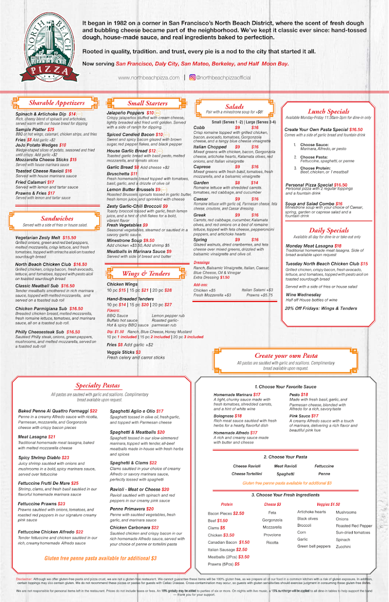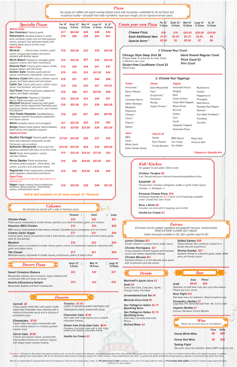 At North Beach Pizza, you'll find a menu packed with mouthwatering options that are sure to satisfy every craving. From classic cheesy pies to unique combinations that push the boundaries of flavor, the selection here never disappoints. The crust is always perfectly crisp, offering just the right amount of chewiness, while the toppings are fresh and flavorful. Whether you're in the mood for a simple Margherita or something bolder like a barbecue chicken pizza, there's something for everyone. Not to mention, the garlic knots and fresh salads provide the perfect accompaniment to any meal. If you're a fan of great pizza, the North Beach Pizza Menu is a must-try, offering a variety of options that bring a slice of Italy to the heart of San Francisco.